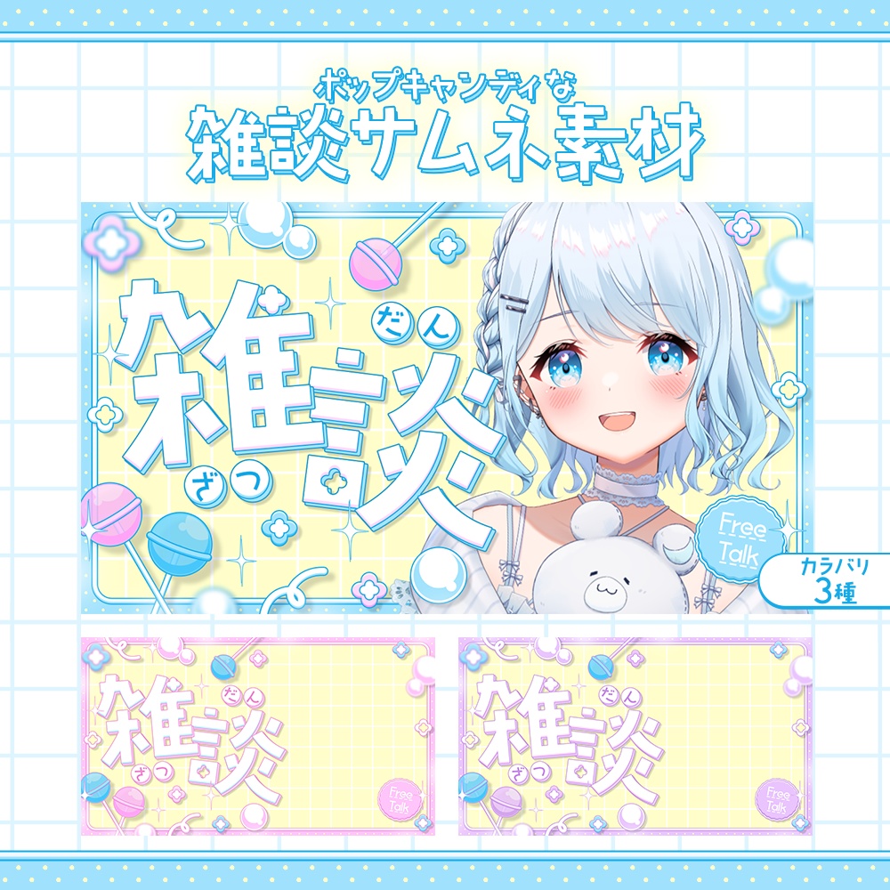 【カラバリ3種】ポップキャンディな雑談サムネ素材